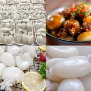 Mực nhỏ đều, giữ nguyên đầu và xúc tua, đẹp mắt khi chế biến
