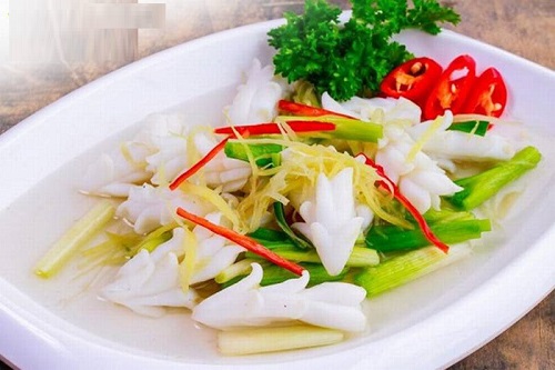 Món mực cắt hoa hấp hành gừng