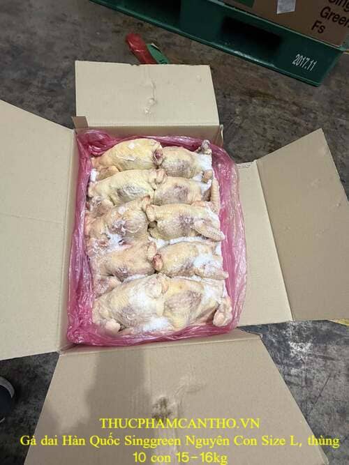 GÀ DAI HÀN QUỐC SINGGREEN NGUYÊN CON SIZE L, THÙNG 10 CON 15–16KG