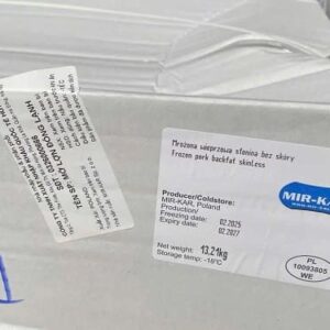 Mỡ lưng heo Mir-Kar là sản phẩm thịt mỡ heo cao cấp, được nhập khẩu trực tiếp từ Ba Lan, do MIR-KAR – một trong những nhà sản xuất thịt hàng đầu châu Âu cung cấp. Sản phẩm đạt tiêu chuẩn chất lượng châu Âu, được kiểm định nghiêm ngặt về an toàn vệ sinh thực phẩm, phù hợp cho các cơ sở chế biến, nhà hàng, quán ăn và nhà máy sản xuất thực phẩm.