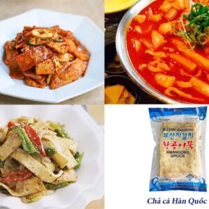Xúc xích tiệt trùng và xúc xích đông lạnh,Cẩu tre (chả giò cuộn thịt truyền thống),Bánh bao nhân thịt, nhân trứng cút, bánh bao chay, Bánh gạo Hàn Quốc nguyên vị, cay, phô mai, Chả cá chiên, hấp, viên chả cá các loại