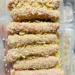 Thịt heo xay, bì heo, bột chiên xù, tỏi, tiêu, gia vị, nước mắm, chất điều vị, chất ổn định, chất bảo quản đúng tiêu chuẩn VSATTP.